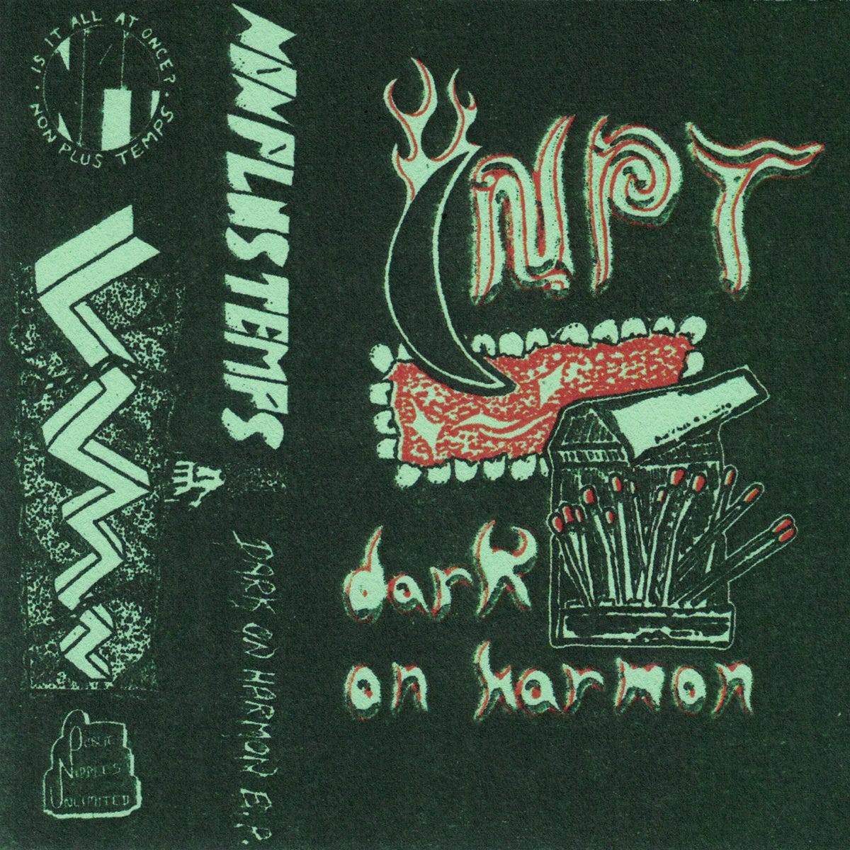 Not a band, then, but a hub—Non Plus Temps’ new EP, Dark On Harmon, arrives at the height of summer, in time for the dog days of protest and the groggy, inevitable comedown; for bike rides to mystery gigs and midnight picnics; and for further unforeseeable conspiracies. In some ways, Dark On Harmon feels pared down from the haunted house party of their 2022 debut, Desire Choir; though it follows in relatively quick succession and pairs well with the preceding statement. Once again the Tascam is both tool and concept, as the tape is a sonic terrain: “Every four-track mixdown cemented in place another layer of sedimentary noise, another vision of superseding our condition as human rentals.”