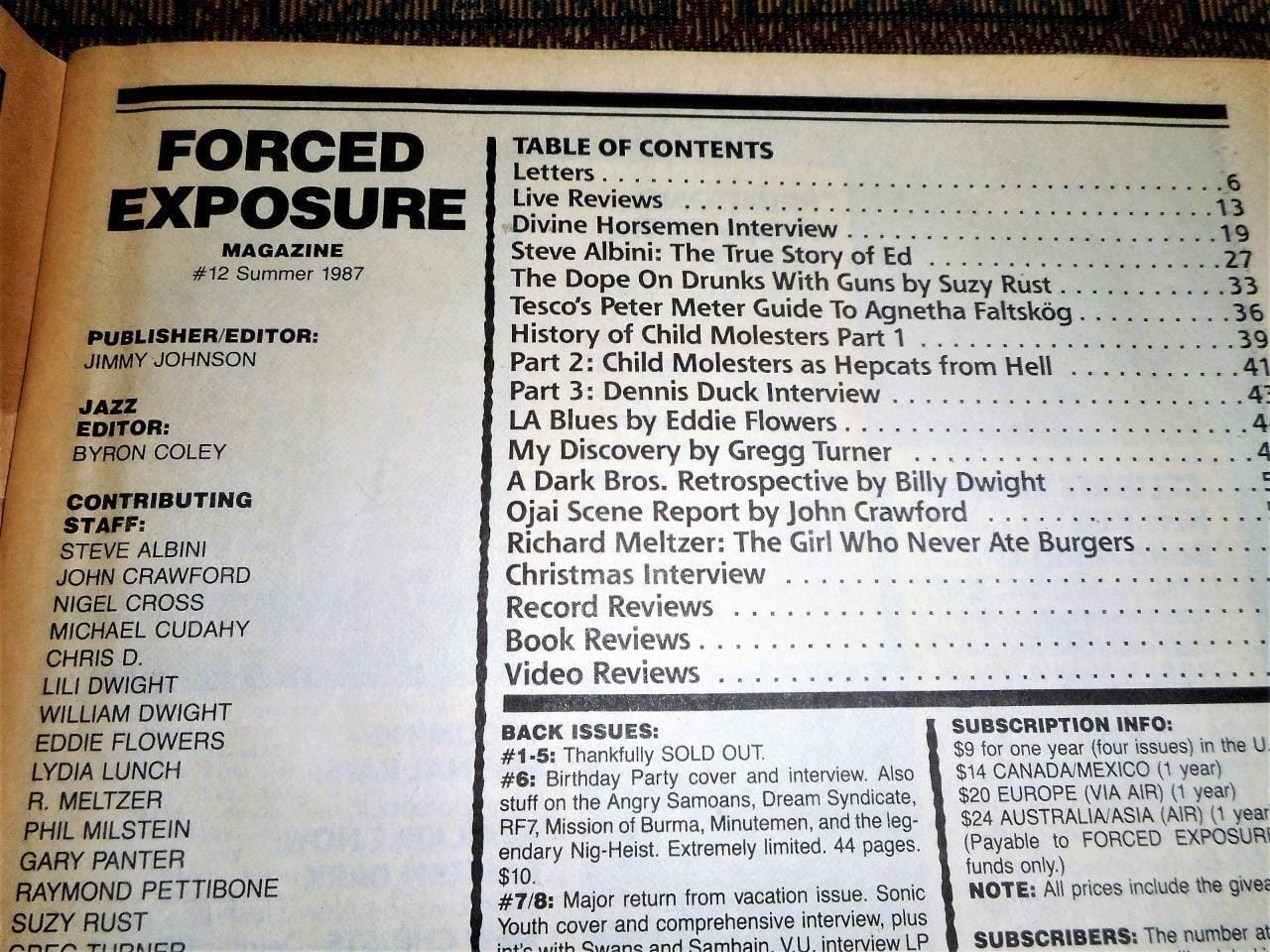 Albini's own periodization of this trend is surprisingly insightful. "If anything," he writes, "we were trying to underscore the banality, the everyday nonchalance toward our common history with the atrocious, all while laboring under the tacit *mistaken* notion that things were getting better." It's a better-than-expected account, and I often think of the shock tactics and general seediness that proliferated in the 80s and 90s as a response to the implied permissiveness of the so-called End of History; just so many attempts to find pleasureful traction on a frictionless plateau. In the advanced capitalist countries, where youth culture persists as sanctioned rebellion, the march of progress to nominal rights for all appears secure; yet this expanding franchise is inexorably linked to all manner of dispossessing and deregulating operations in the economy, manifesting contradictory effects in the cultural sphere.